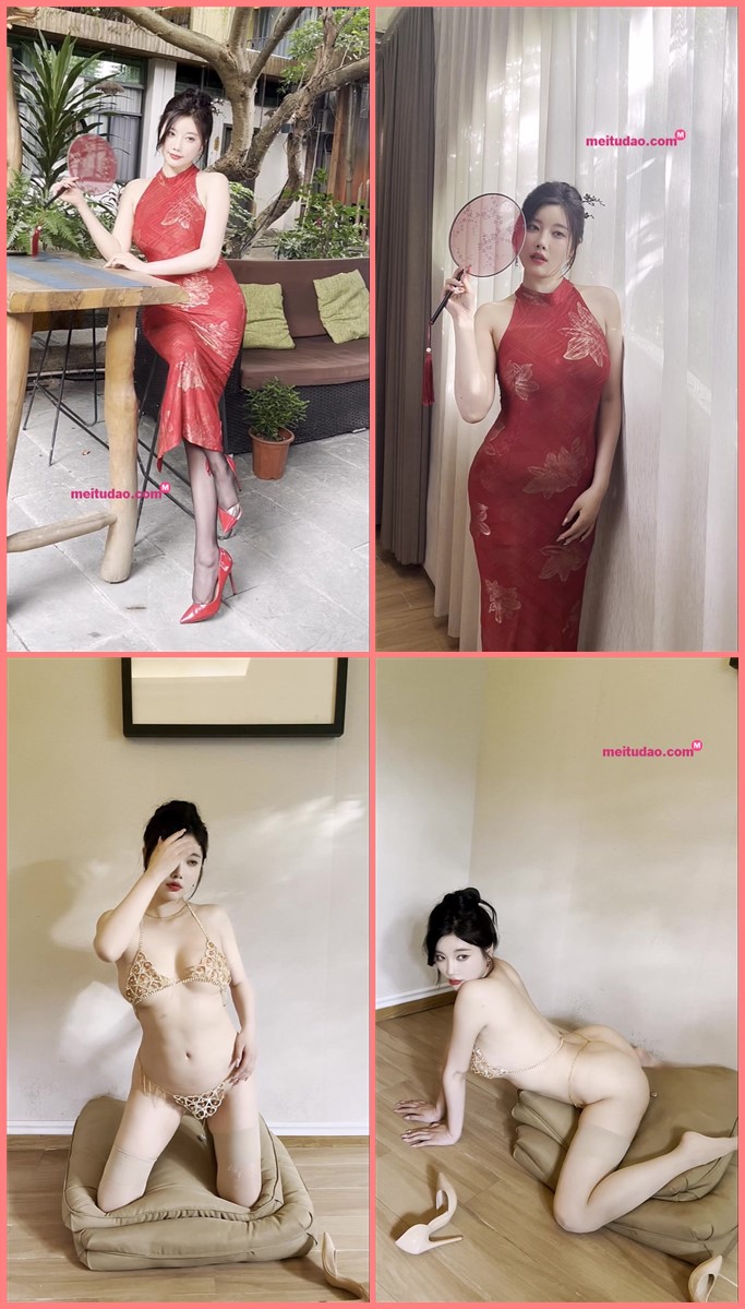 性感红色旗袍搭配性感魅惑黑丝,性感迷人的丰腴身材,完美绝伦的身段一览无余,女神姿态摄人心魄